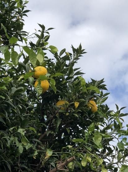 裏庭の柚子の実もだいぶ色が尽がつき、今年も冬至のゆず湯に使えそうです。